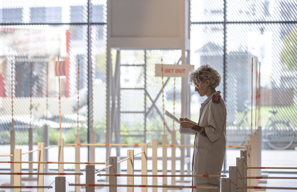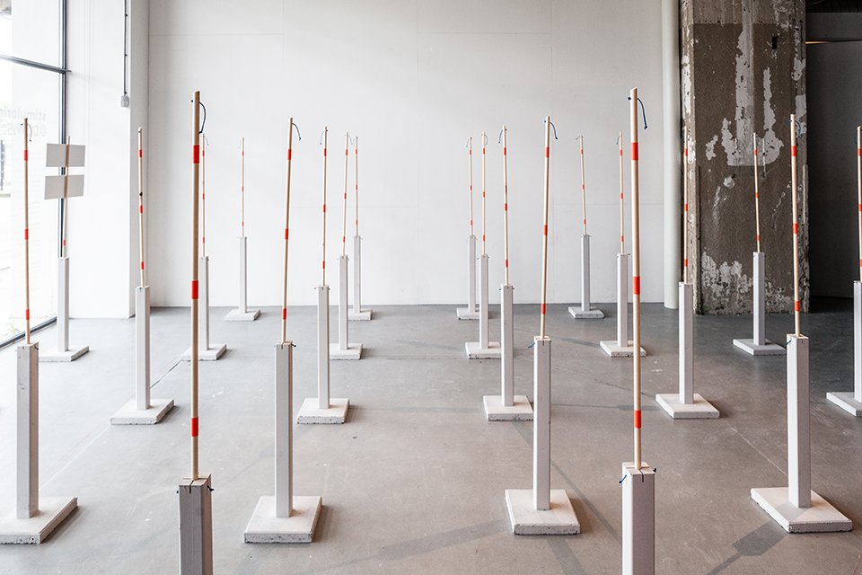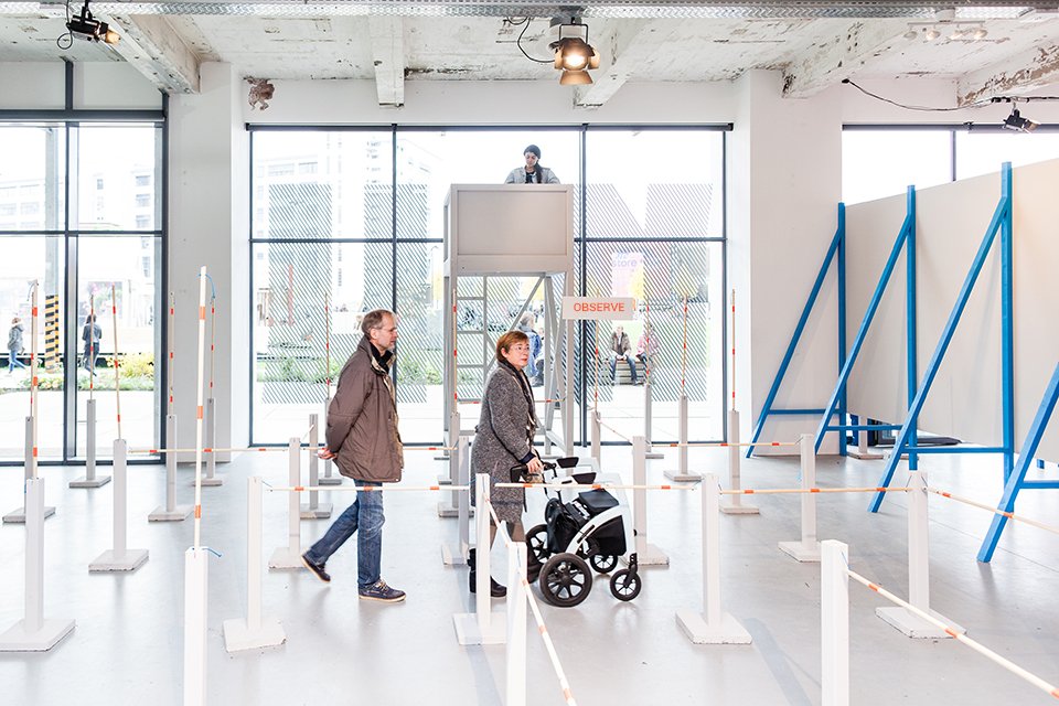 Bold routing design, referring to traffic. The work was showcased during the Dutch Design Week, when large groups of people flocked through the city of Eindhoven.