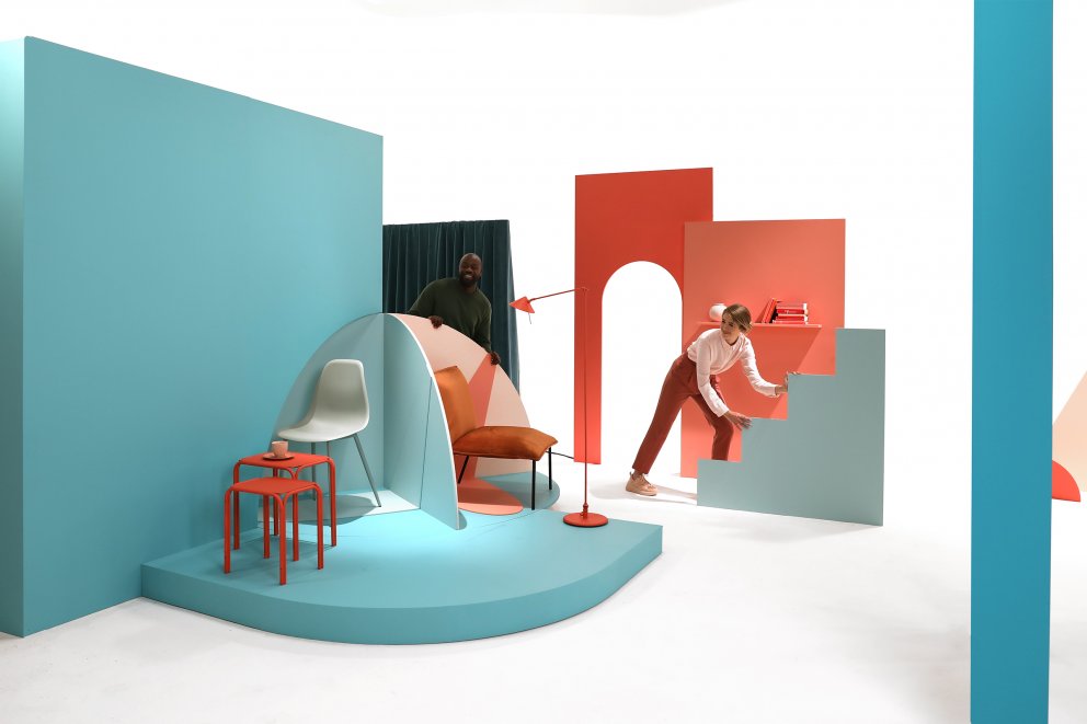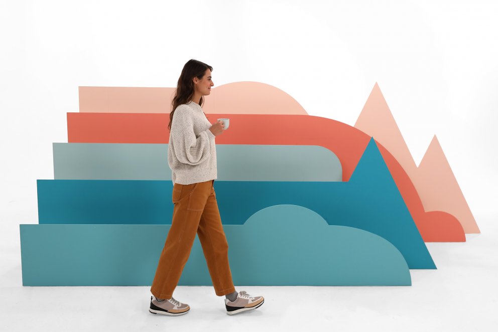 A life-size paper world for the release of the KENDU app by ABN AMRO, featuring moving set elements and colourful graphics in a 2D / 3D landscape. The paper props are made by Papersmith studio.