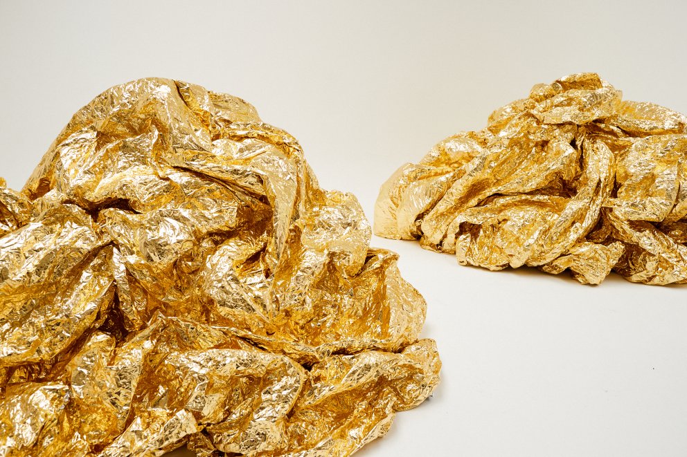 set creation for publication in Numéro Magazine, with 'liquid' metallic shades, translucent colours and swaggering golden rock-creatures by Grietje Schepers